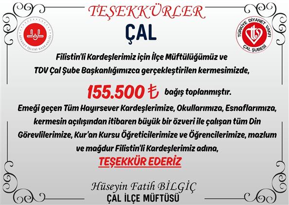 Tüm Hayırsever Kardeşlerimize Teşekkür Ederiz.