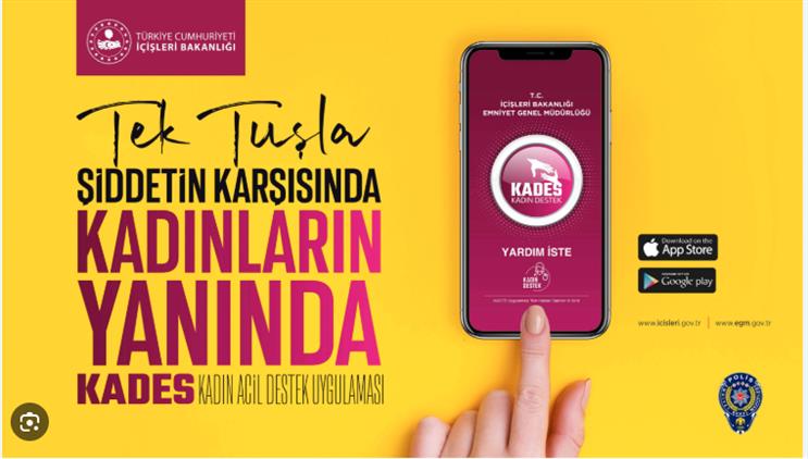Akıllı telefon kullanıcısı bir kadının, Google Play Store ve Apple Store uygulamasından indireceği “Kadın Destek Uygulamasını (KADES)”, T.C. Kimlik Numarasını girerek ve sonrasından EGM serverlarından gelen aktivasyon kodu ile aktif hale getirebileceği uygulama ile aile içi ve kadına yönelik şiddet mağduru kadınların acil durumlarda cihaz konum bilgisini açarak bir tuşla 155 Polis İmdat Acil Çağrı Merkezine ulaşarak, yardım çağrısının yapıldığı olay yerine en yakın ekip veya devriyenin sevk edilerek olaya müdahalesi sağlanacaktır.