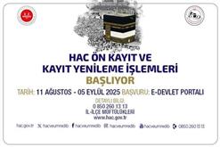 Diyanet İşleri Başkanlığı 2026 Yılı Hac Organizasyonu kapsamında hac ön kayıt ve kayıt yenileme işlemleri başladı. 11.08.2025 Detay